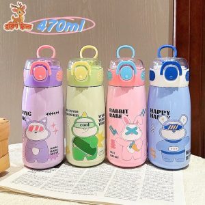 350ml Cartoon Cat Stainless Steel Vacuum Flask With Straw Portable Kids Thermos Mug Travel Thermal Water Bottle Tumbler